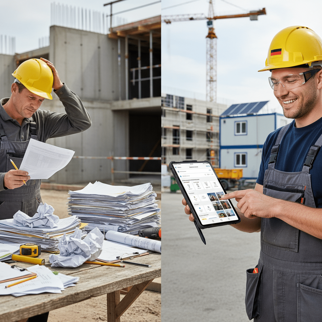 Einleitung Im Handwerk kämpfen Bauleiter und Handwerksmeister täglich mit dem Bürokratiewahnsinn: Verlorene Zettel, unleserliche Stundenzettel und endlose Rückfragen vom Büro zur Baustelle fressen Zeit und Nerven. Laut einer Studie des Zentralverbands des Deutschen Handwerks (ZDH) verlieren Handwerksbetriebe durch ineffiziente Prozesse bis zu 20 % ihrer Arbeitszeit – Zeit, die bei Fachkräftemangel Gold wert ist[1]. Hier […]