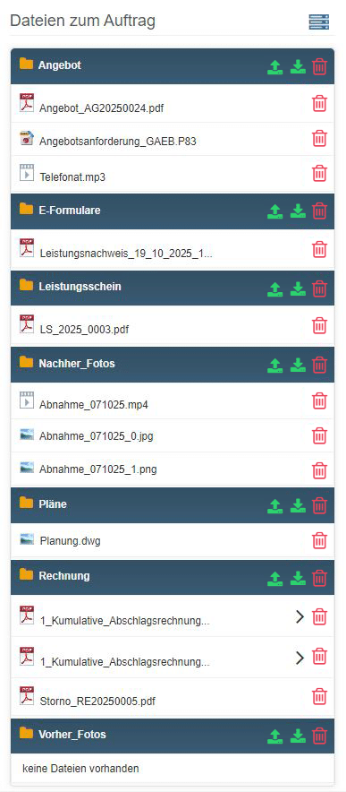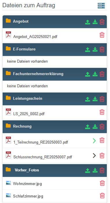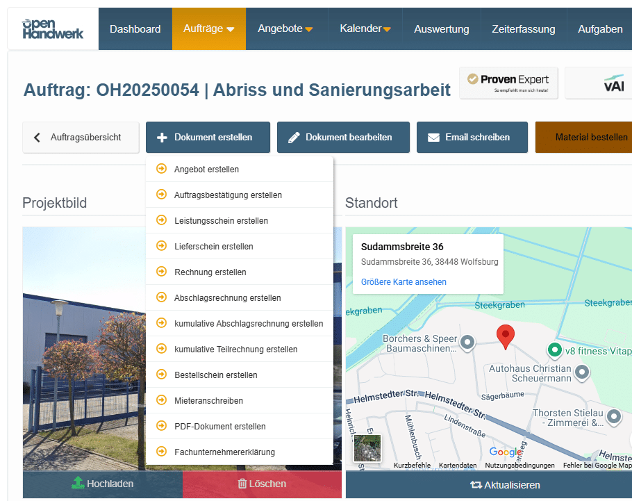 In openHandwerk können Sie Stand heute +40 verschiedene Formate hinterlegen. Zu den gängigsten Dokumenten gehören Angebote, Auftragsbestätigungen, Abschlagsrechnungen, kumulative Teilrechnungen, Leistungsscheine, Stücklisten, Bestellscheine, Rechnungen sowie Eingangsrechnungen, erhaltene Lieferscheine als auch Baupläne oder Leistungsverzeichnisse.