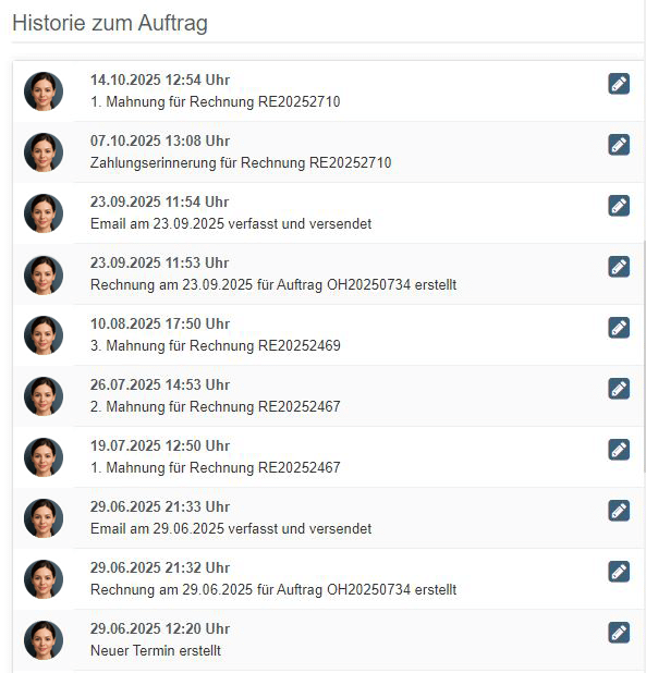 Bei der Dokumentation geht es jedoch nicht nur um Bilder und/ oder Dokumente. Ein wesentlicher Bestandteil ist die Dokumentation Büro <> Baustelle und Büro <> Auftraggeber. openHandwerk schreibt hier automatisch Historien mit und gibt Ihnen die Möglichkeit, individuell Nachrichten aus der stattgefundenen Kommunikation zu hinterlegen.