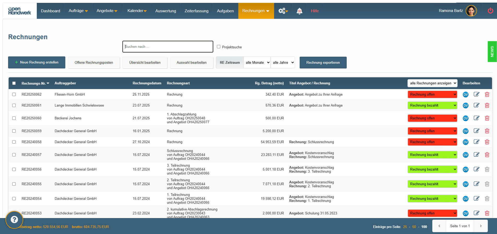 Angebote und Rechnungen waren nie so einfach. Ob Abschlagsrechnung, kumulative Teilrechnungen, Sicherheitseinbehalte, Baustrom und/ oder Skonto. Handwerksbetriebe und Bauunternehmen haben ein anspruchsvolles Rechnungswesen. openHandwerk bietet hier den größten Umfang im Bereich von Cloudsoftware. Durch unseren gewerkeübergreifenden Ansatz haben wir eine Vielzahl von Funktionen in unserer Handwerkersoftware umgesetzt.