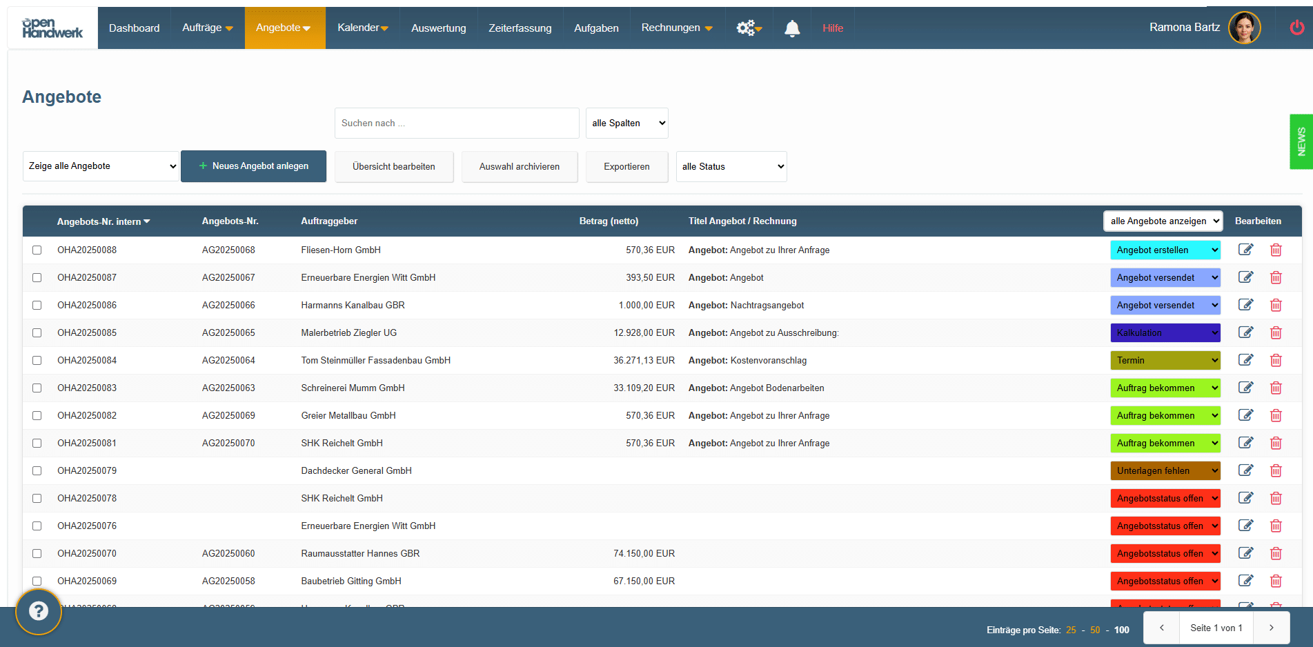 Keine Mappen ohne Status! Der Status in openHandwerk ist für unsere Kunden eines der wichtigsten Funktionen. Wie viele offene Aufträge oder Angebote habe ich? Welche Aufträge sind in Arbeit? Wo müssen wir eine Rechnung stellen?