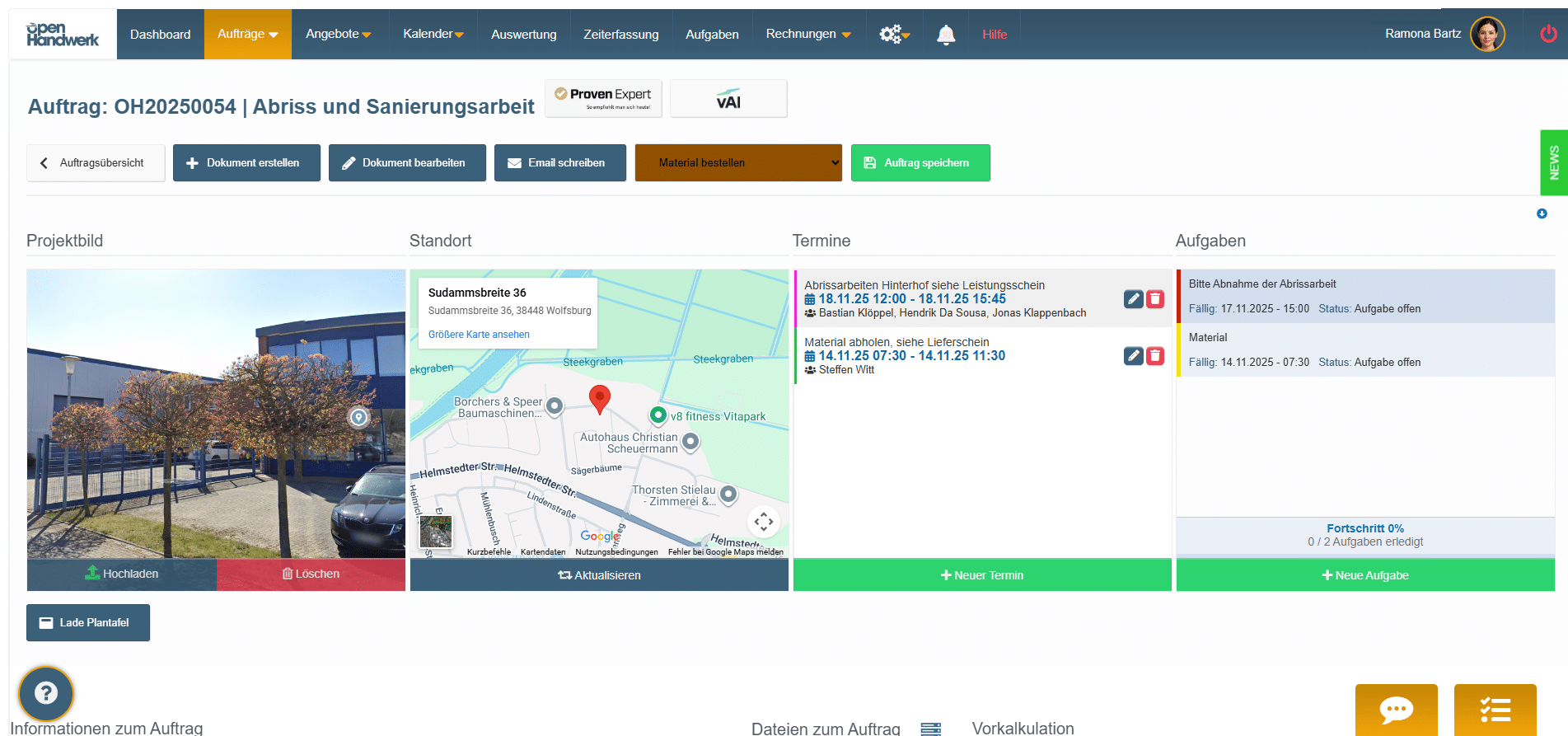 openHandwerk ist aus einem Unternehmen entstanden, das im Jahr ca. 1.000 Aufträge betreut – von größeren Bauvorhaben bis hin zu vielen Instandhaltungen für zahlreiche Verwalter deutschlandweit, mit eigenen Mitarbeitern, mit Nachunternehmern, Zeitarbeitern und Partnergewerken – mit Büromitarbeitern an diversen Standorten + Homeoffice & Einsätzen in ganz Deutschland – sogar Europa.